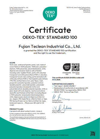 News Flash: Telclean Deepens Green Manufacturing, Secures International Recognition Again Recently, Fujian Teclean Industrial Co., Ltd. has officially achieved two prestigious international certifications: the Global Recycled Standard (GRS) and OEKO-TEX® Standard 100.