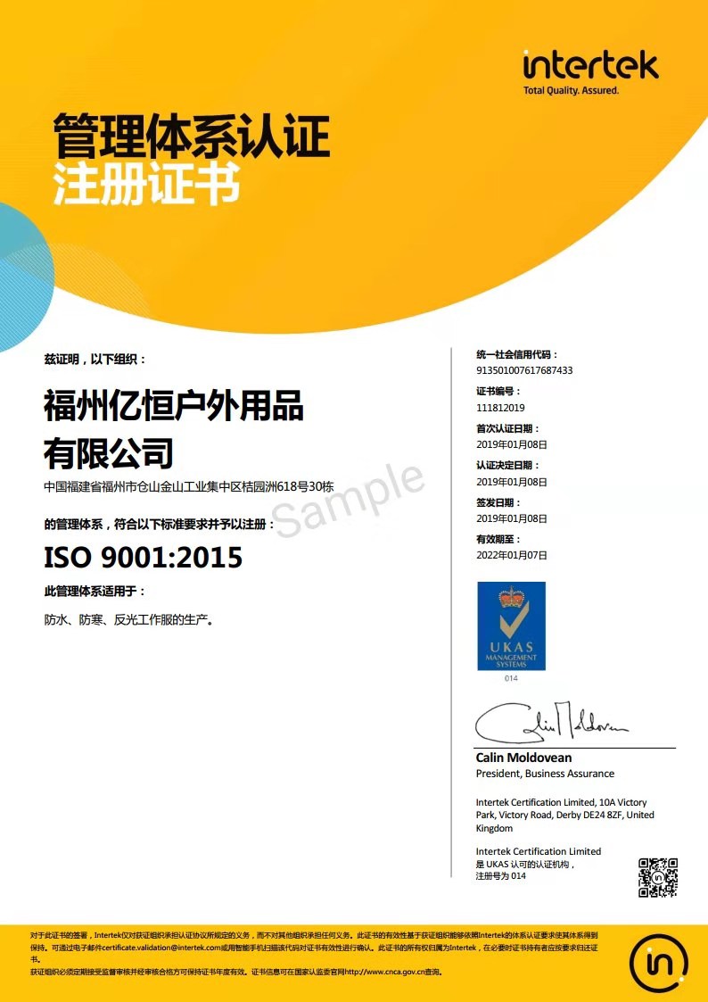 Management system certification registration certificate